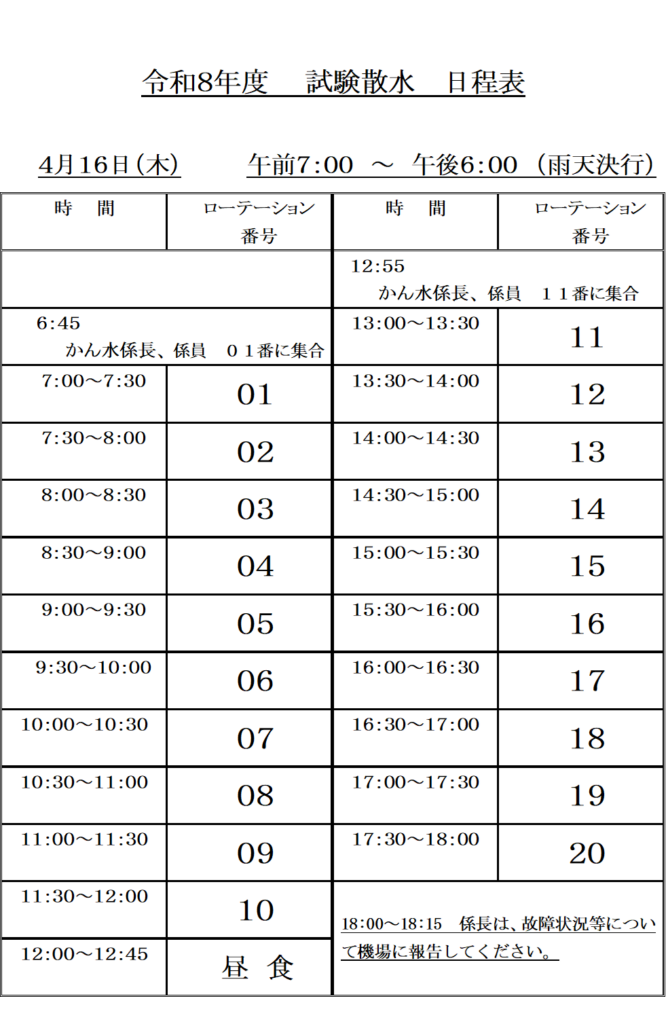 • 令和7年9月1日(月)から5日(金)夜間1・5時間かん水日程のお知らせ。